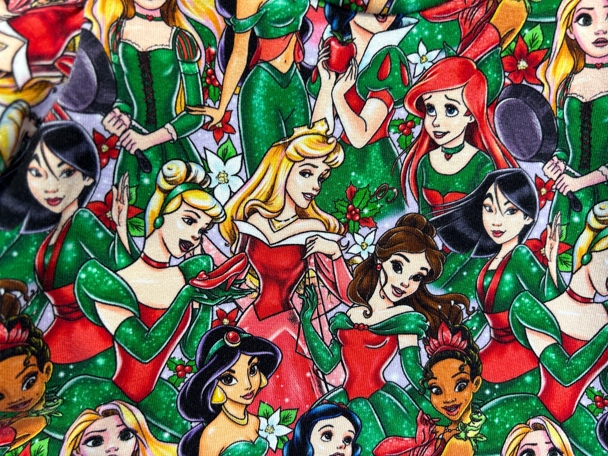 Celebrate the magic of the season with this playful Christmas Princesses Dress, perfect for size 5 little ones. Featuring all the beloved princesses dancing across a festive green background, this dress delights with a twirling skater skirt and whimsical flutter sleeves. It’s designed for comfort and fun, making every holiday moment extra special.