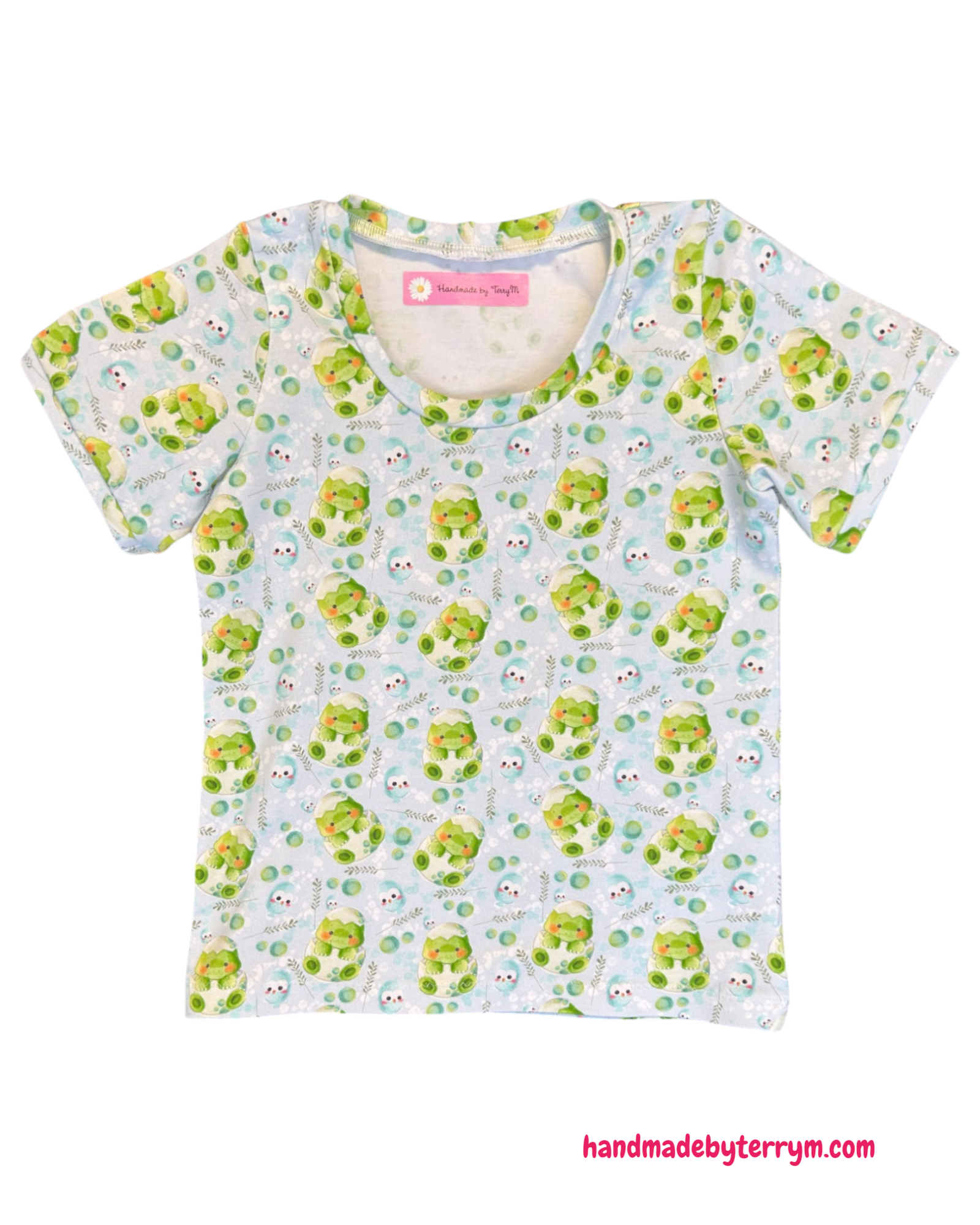 This Baby Dino t-shirt is made of 220g knit fabric (95% Cotton, 5% Lycra), that is easy to care for and will last the test of time without losing its shape.