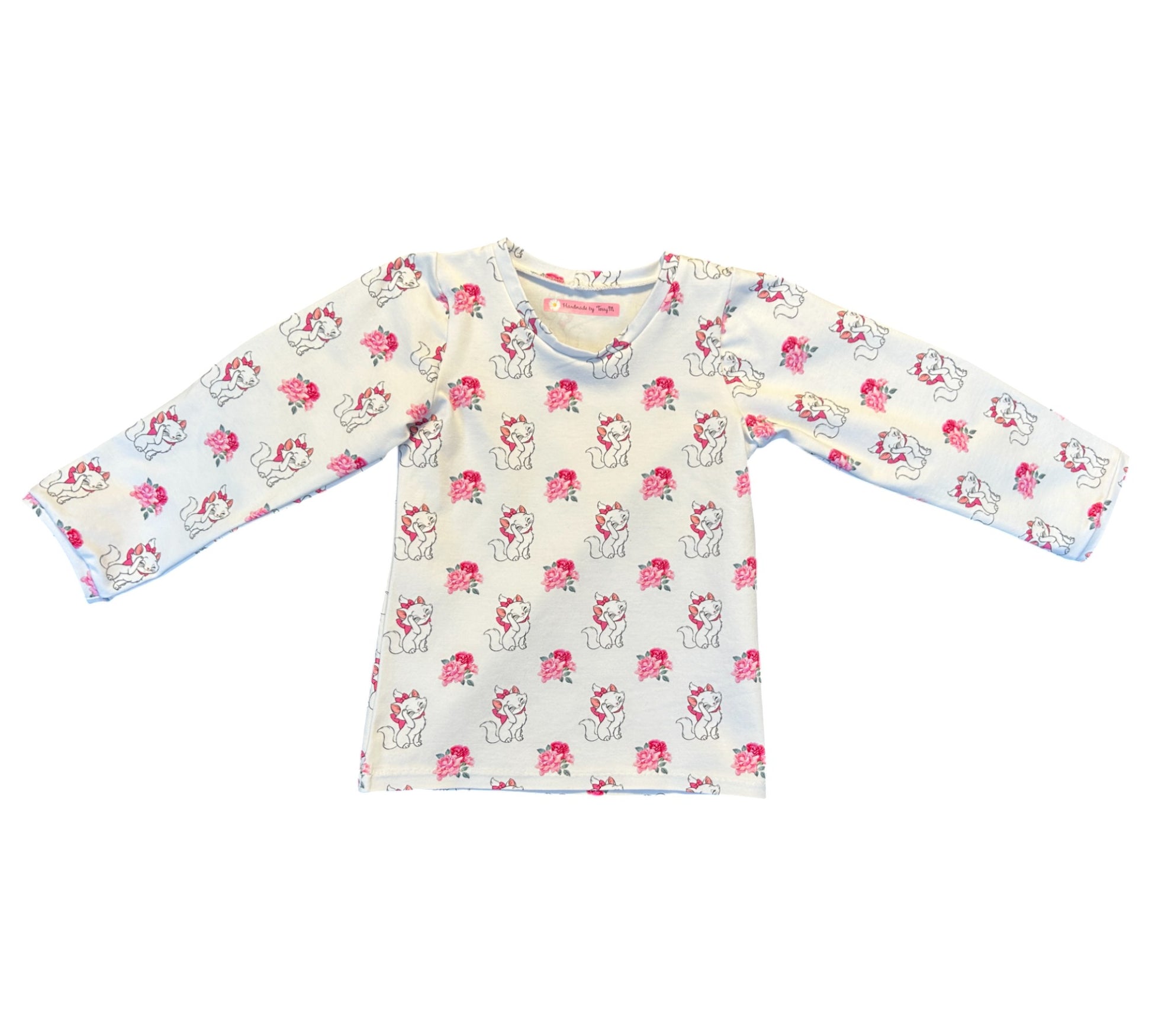 This adorable long sleeve t-shirt features a charming white cat design that’s perfect for adding a touch of whimsy to any outfit. Made with soft, comfortable fabric, it’s ideal for keeping cosy while showing off your love for feline friends. Sized just right for little ones, this playful tee brings smiles wherever it goes.