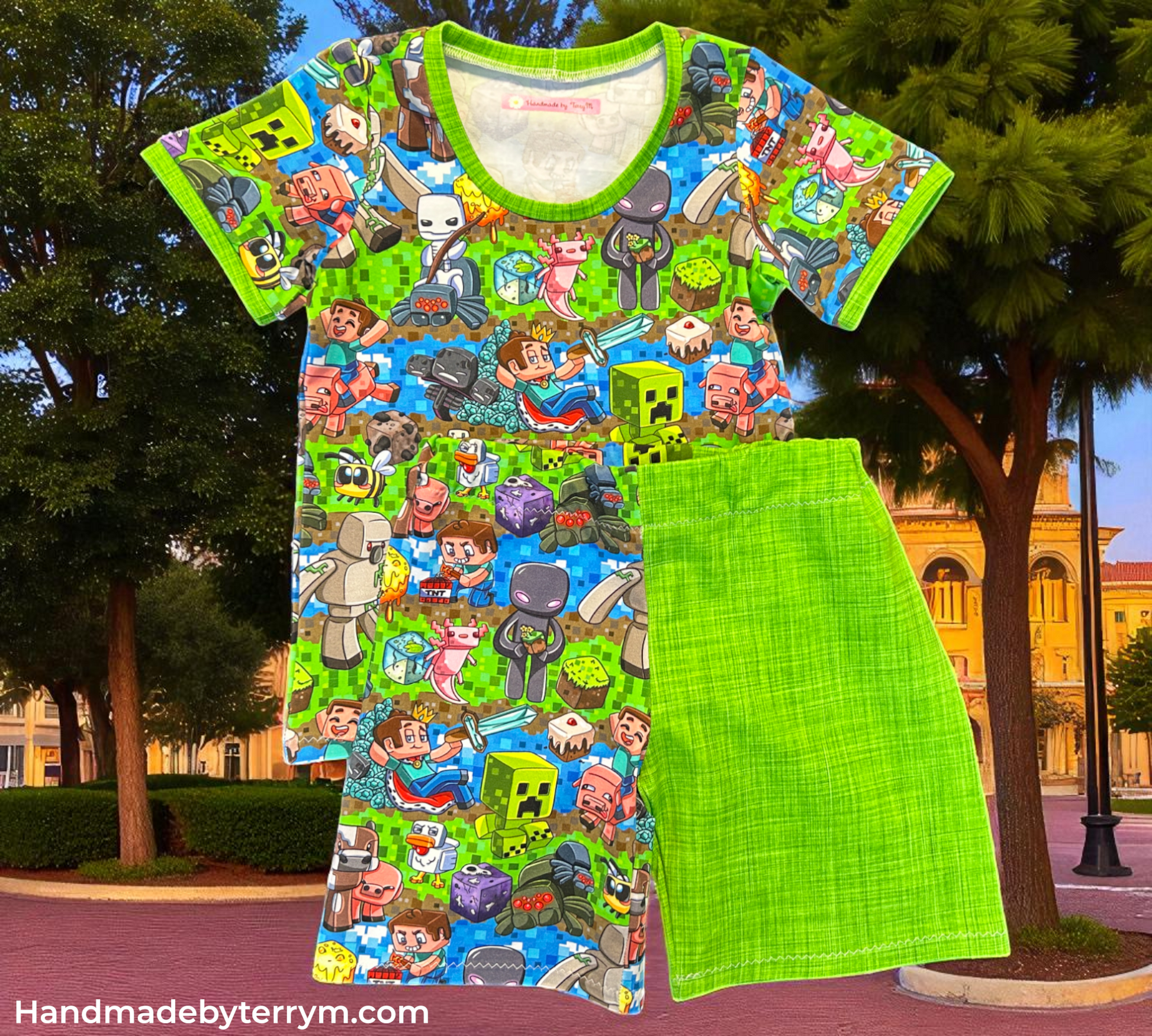Get ready for adventure with this playful Minecraft T-Shirt & Shorts Set in size 4. Featuring vibrant green Minecraft figures, this comfy outfit is perfect for little gamers who love to explore and create. Soft fabric and a fun design make it ideal for active play and everyday wear.
