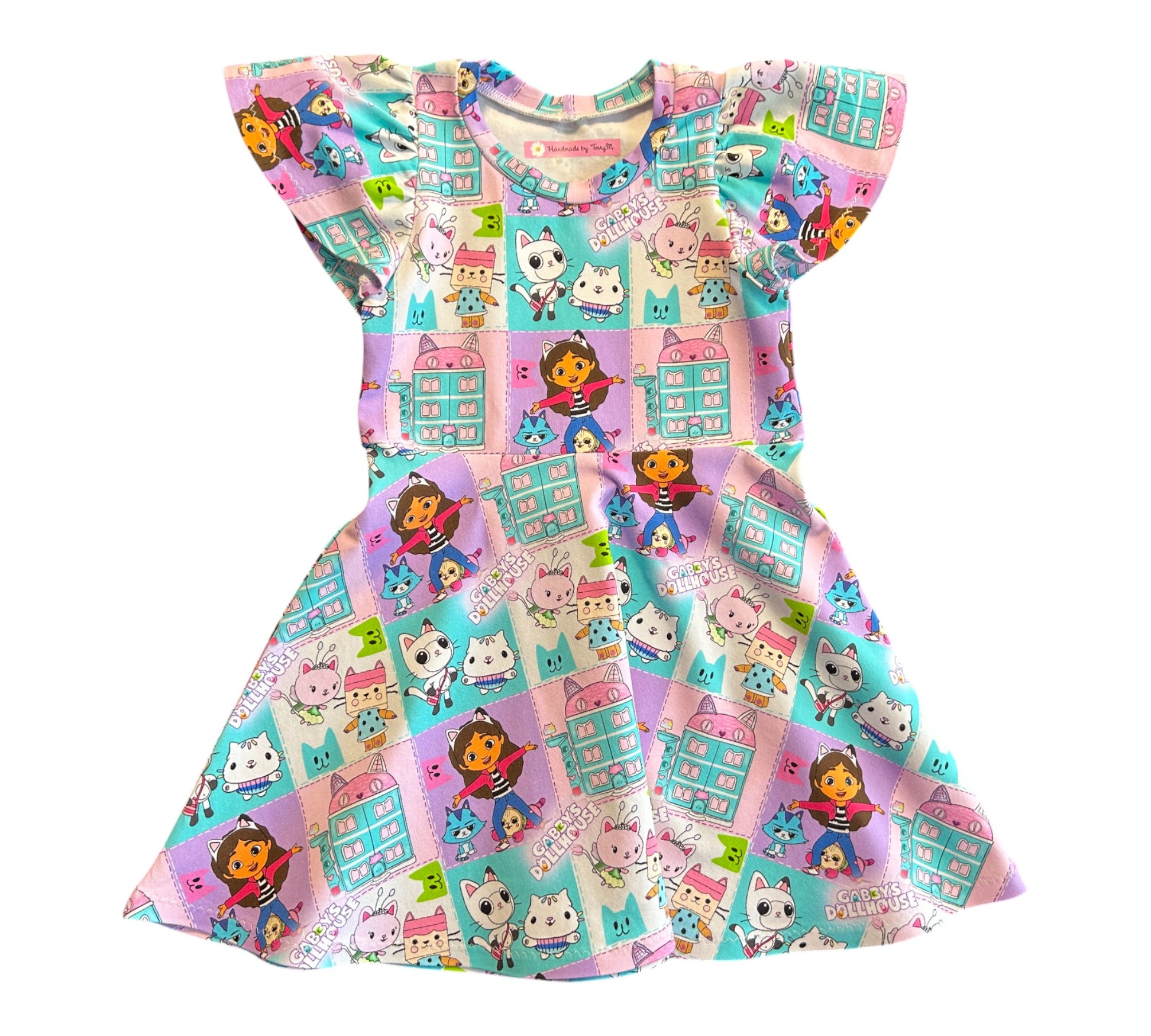 This playful Gabby Dress (Size 3) is perfect for any occasion with its flutter sleeves and skater skirt. It's sure to make a statement and keep you comfortable all day long. Get your twirl on with this quirky and fun dress featuring Gabby and her dollhouse friends.
