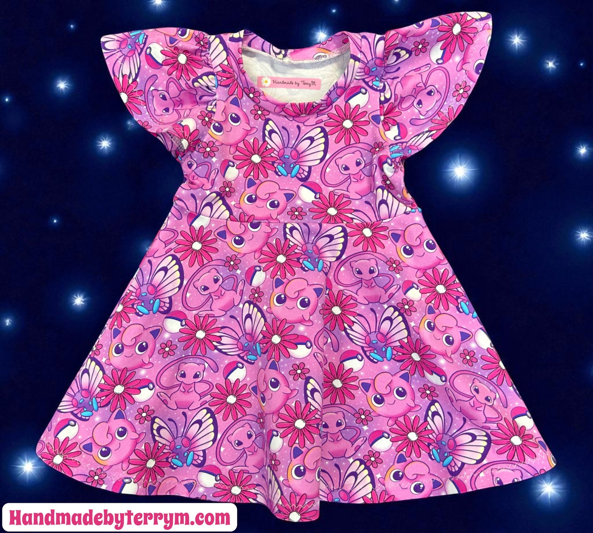 This one-of-a-kind dress is for the most dedicated Pokémon fanatics! Flutter sleeves with a skater skirt, this handmade size 1 dress is ready to be added to your little one's wardrobe. Featuring a fun Pokémon pattern, it's perfect for everyday excursions. Gotta catch 'em all - and look cute doing it!