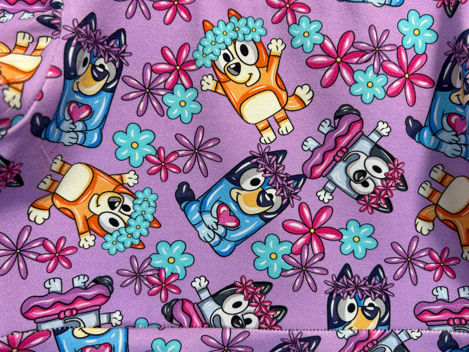 This playful purple dress features Bluey and Bingo against a vibrant purple background, perfect for lively little ones. Designed with flutter sleeves and a fun skater skirt, it offers comfort and freedom to twirl all day long. Ideal for everyday adventures or special outings, it brings a splash of joy to any wardrobe in size 3.